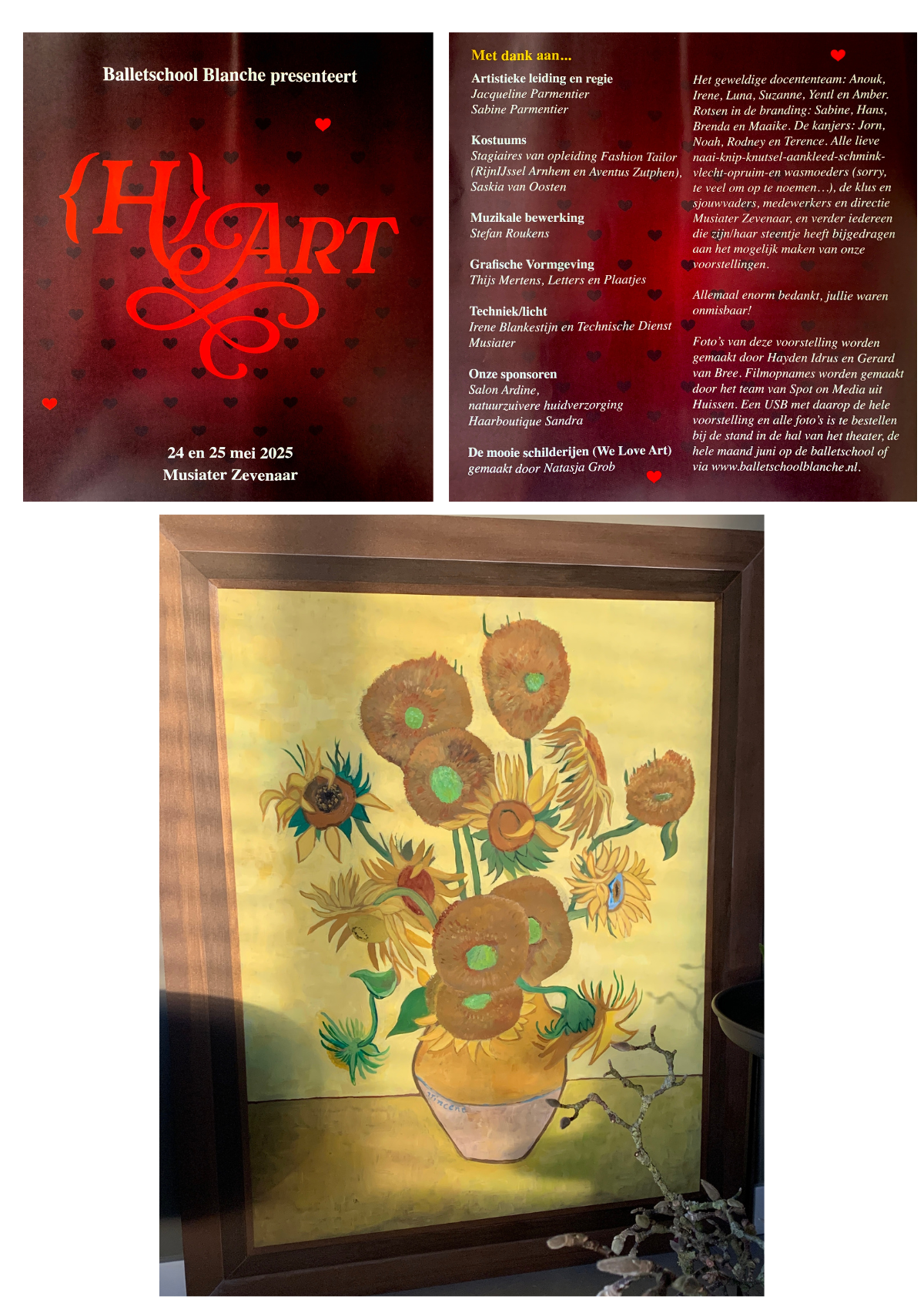 Actueel EXPOSITIE 01-10-2025 tot 31-03-2026 Restaurant Eet-Lokaal Wittenburg te Zevenaar PUBLICATIE 03-09-2025 Zevenaar post VOORSTELLING 25-05-2025 (H)Art van Balletschool Blanche Musiater te Zevenaar PUBLICATIE 26-03-2025 Zevenaar post