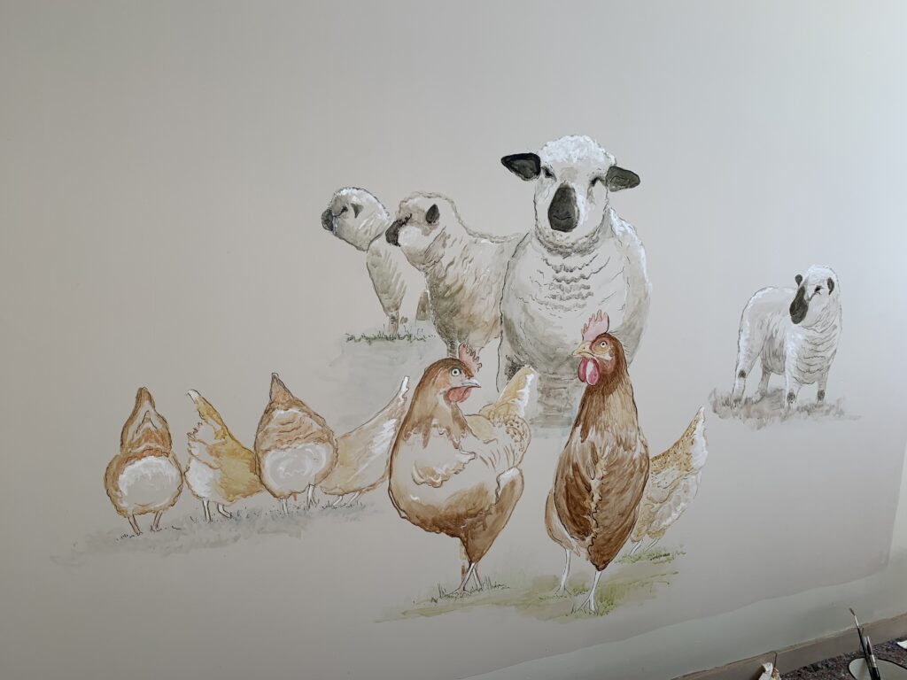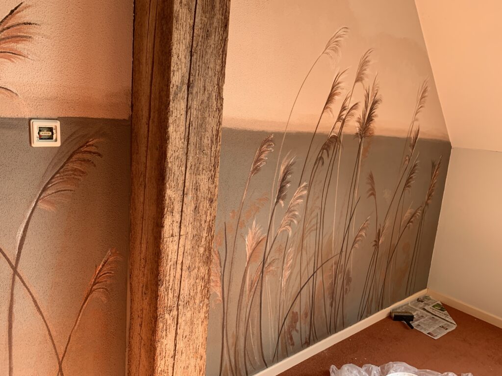 Een muurschildering kan net dat stukje persoonlijkheid toevoegen aan de ruimte. Ik vind het belangrijk dat het ontwerp in harmonie is met de omgeving. Zo ga ik eerst in gesprek om te begrijpen wat het gewenste doel is.